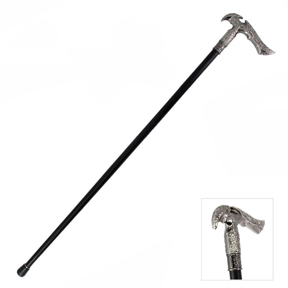37 Inch Medieval Classic Gentleman’s Walking Stick. The Handle features intricate, etched scrollwork. Features a Zinc Handle and Metal Cane with Rubber Tip.