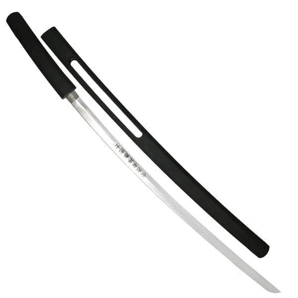 40.5″ Overall Length Shirasaya Sword. 27.25″ Stainless Steel Blade With Laser Etched Samurai Code. Black Handle